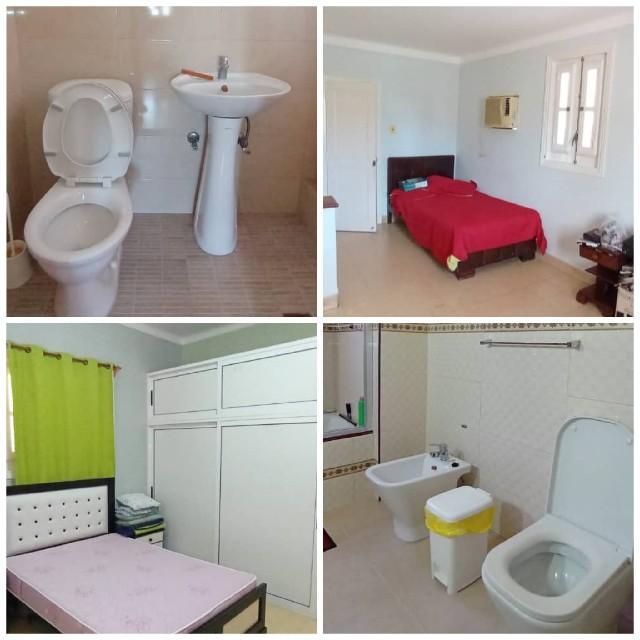 Casa independiente de jardín,portal.pasillos laterales,carpost,garaje,sala,comedor,cocina,4 cuartos con closet,3 baños,terraza trasera techada y cercada con un cuarto de desahogo,patio cementado sin techar,p.libre,agua fría y caliente,110 y 220 vol,cisterna propia grande.telefono fijo .