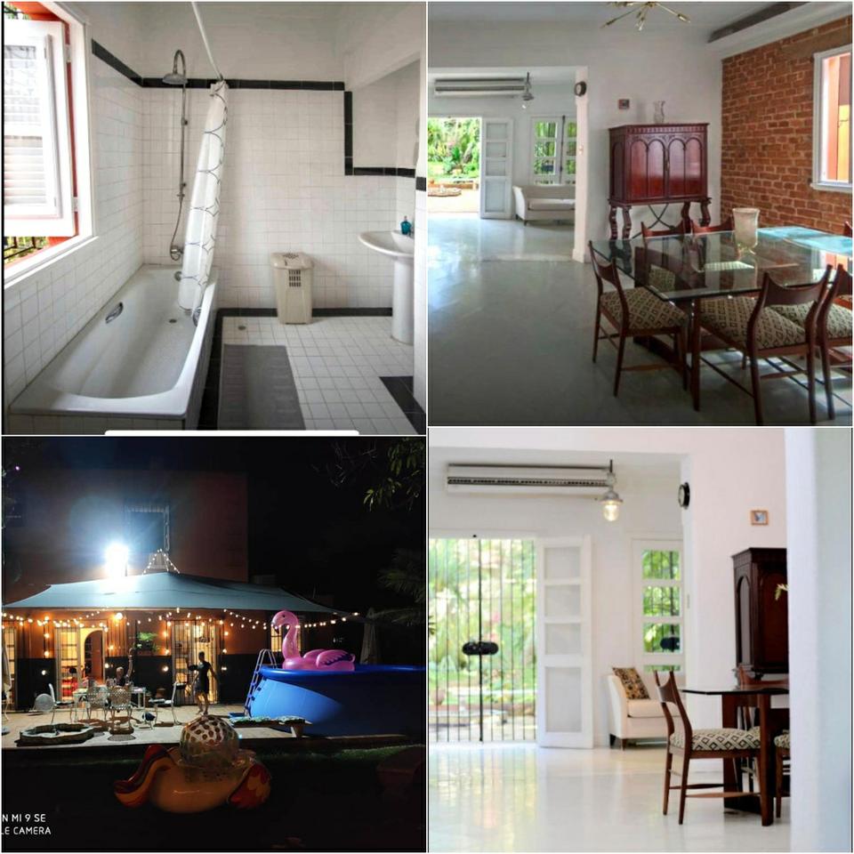 Casa independiente en vedado con jardín ,carpost,garaje,sala,biblioteca comedor, baño,cocina, terraza de cemento al aire libre,y un extenso patio de tierra, planta alta 3 cuartos con sus closet y 3 baños.p.libre ,agua fría y caliente,cisterna propia,y se quedan cosas