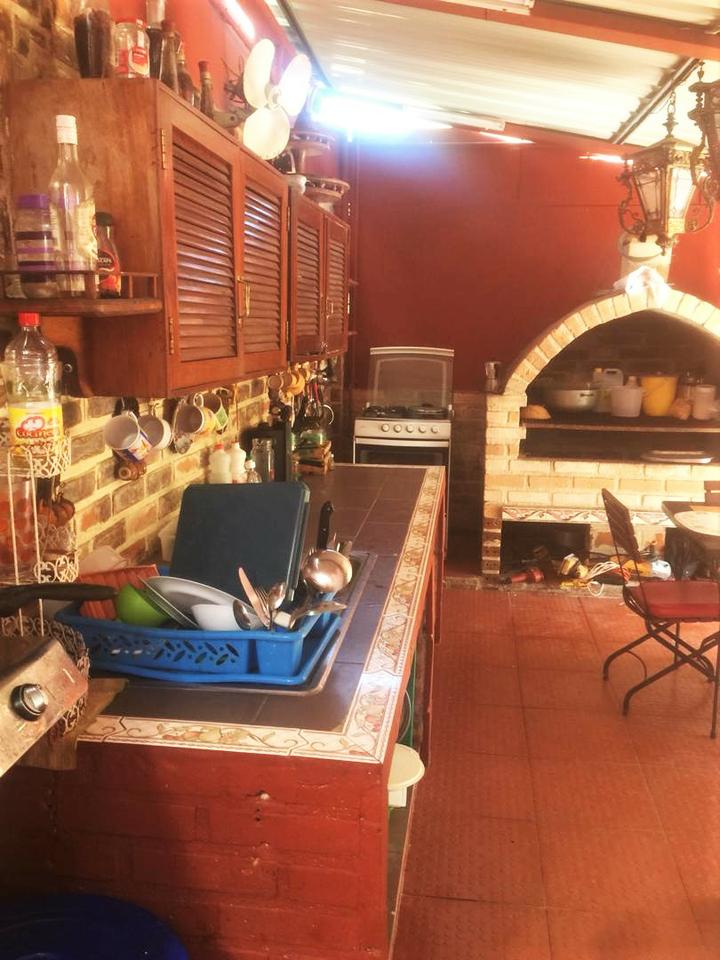 bar, una cocina auxiliar, horno para asar, un baño y una pequeña piscina.
