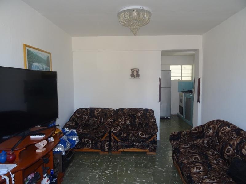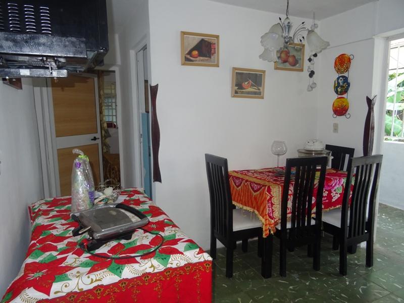 Venta de apartamento en los bajos de un edificio biplanta de construcción capitalista, de solo 4 apartamentos, 2 en bajos y dos en alto. Se distribuye interiormente en sala, cocina-comedor, hall, 2 dormitorios, baño, patio de servicio, terraza, patio de tierra con matas de plátanos, garaje.