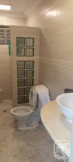 Cuenta con 3 habitaciones, sala-comedor, baño y cocina con azulejos nuevos y mesetas de mármol. Los techos están decorados con yeso y las ventanas y puertas exteriores son de aluminio y cristal. El apartamento tiene varias posibilidades de ampliación y cuenta con jardín en la entrada, terraza en la parte trasera, dos balitas de gas y teléfono fijo. El sistema eléctrico 110 y 220v.