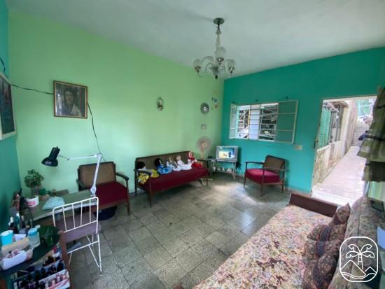 A la vivienda se accede a través de un pasillo y consta de pasillo lateral común, sala, dos habitaciones, una de ellas con closet y actualmente habilitada como comedor, baño, cocina, pasillo lateral independiente alrededor de la casa con lavadero y tanque de gran capacidad elevado y patio amplio cementado y de tierra, cercado perimetralmente, con árboles frutales y cuarto de desahogo.