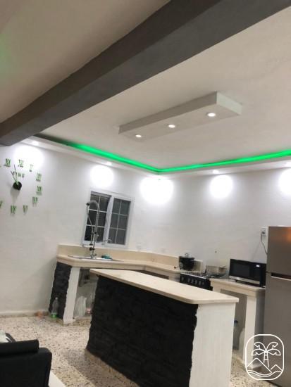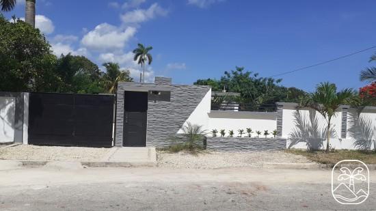 Es una casa grande recién reformada, tiene incluso un apartamento con su cocina su cuarto su sala y su baño todo azulejado, cocina de mármol duchas modernas. La casa principal consta de 3 cuartos con su baño, su cocina de mármol con una isla de concepto abierto a la sala.