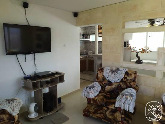 El inmueble consta de sala, comedor, cocina independiente, 2 dormitorios, un baño, azotea libre y en la planta baja un pequeño garage techado para motos.