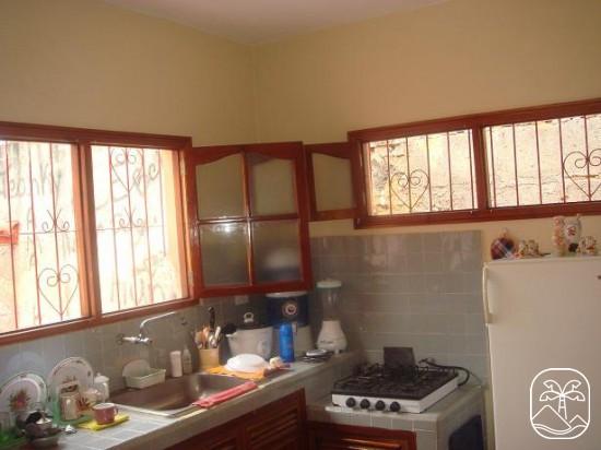 La propiedad consta: Sala, un comedor y una cocina, en esta se dejan cajas de azulejos nuevas para cualquier variación que quieran hacer en la meseta. Además, cuenta con tres habitaciones independientes, cada una con su propio armario empotrado, dos de las habitaciones tienen aire acondicionado tipo split. El baño es intercalado y la casa tiene un portal y pasillos laterales a ambos lados. También cuenta con una terraza y un amplio patio trasero de tierra. La casa está completamente amueblada y cuenta con electrodomésticos.