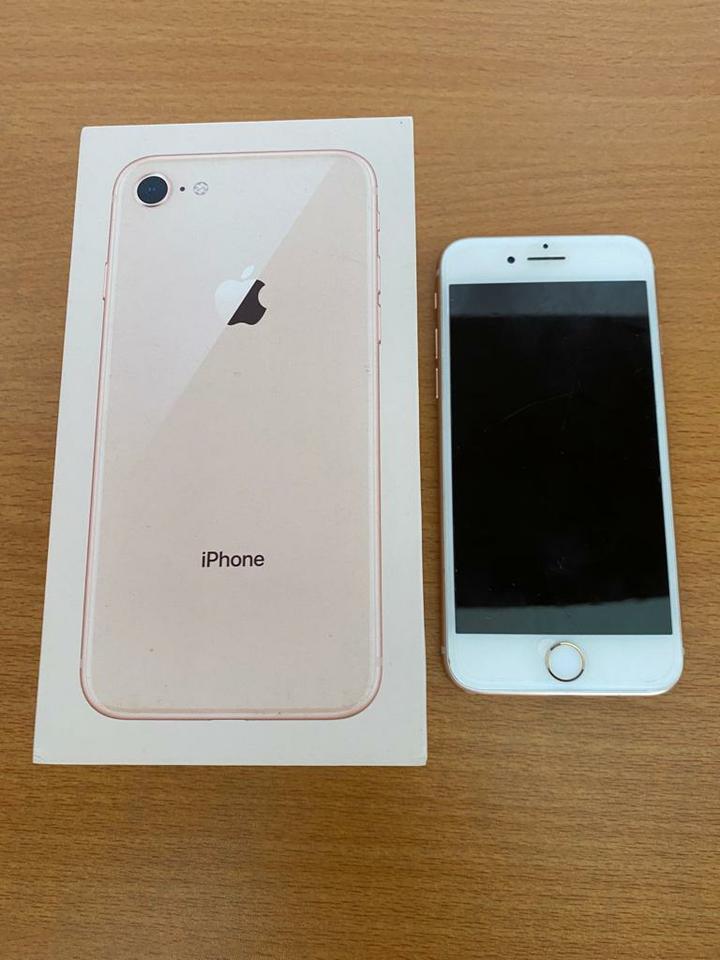 Iphone 8 64GB libre de fábrica, batería 75%. Home ok. Huella ok. Perfecto estado. Con cargador y cable original de Apple. Con mica. Cubierta aparte.
