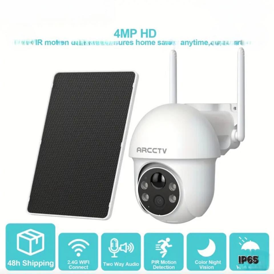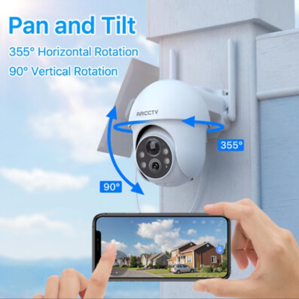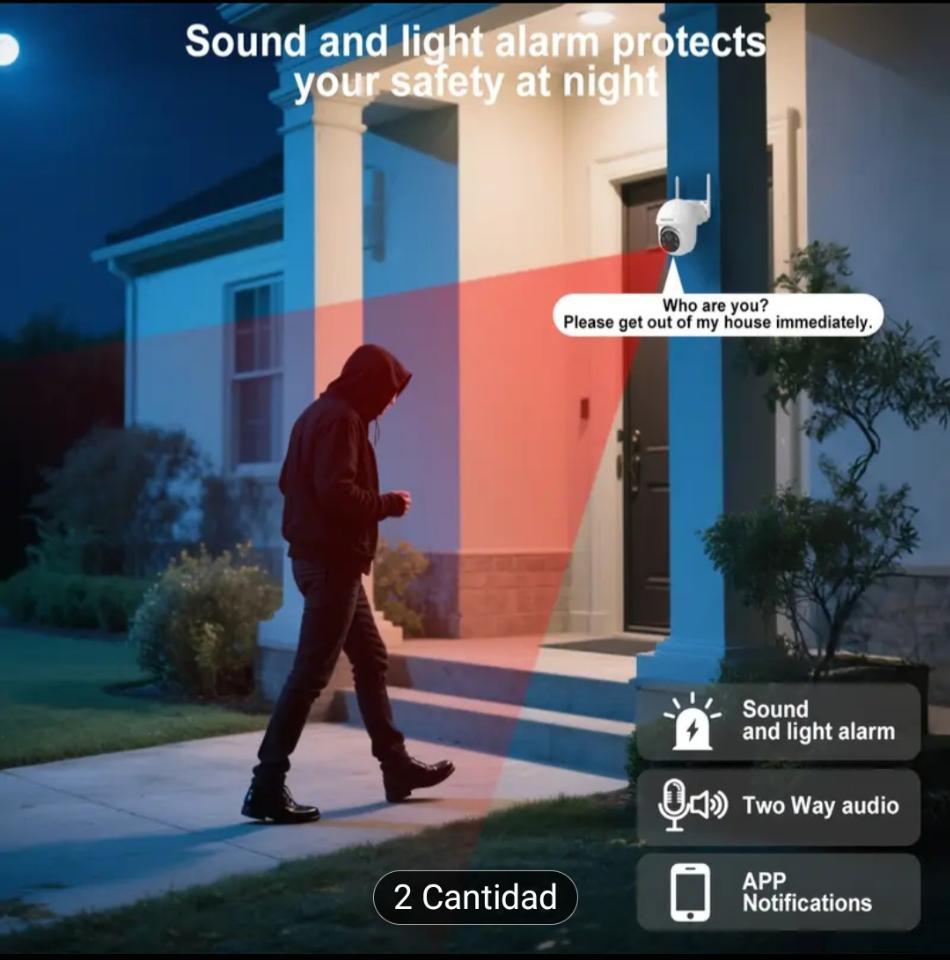 Cámara Solar de vigilancia Modelo Q01.Mediante la descarga de APK en el teléfono controla y recibe imagen y sonido de esta camara de visión 4 MP, FHD. Sin.puntos ciegos..Visión nocturna..Alarma de iluminación y sonido de sirenas. Puede ser utilizado como.imtercpmunicador, ya que el sonido se trasmite en los dos sentidos.