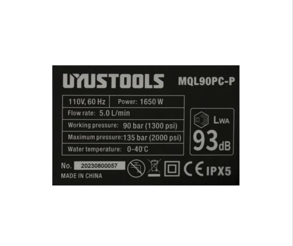 HIDROLAVADORA UYUSTOOL 2000PSI MAX 1650W 110V 60HZ 5LxMin. - $125