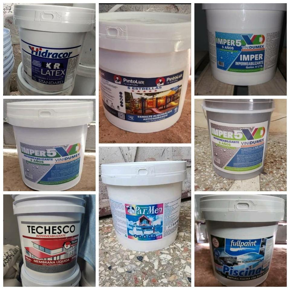 Se vende pinturas de vinil, impermeabilizante, esmalte, anticorrosivo y de piscina.