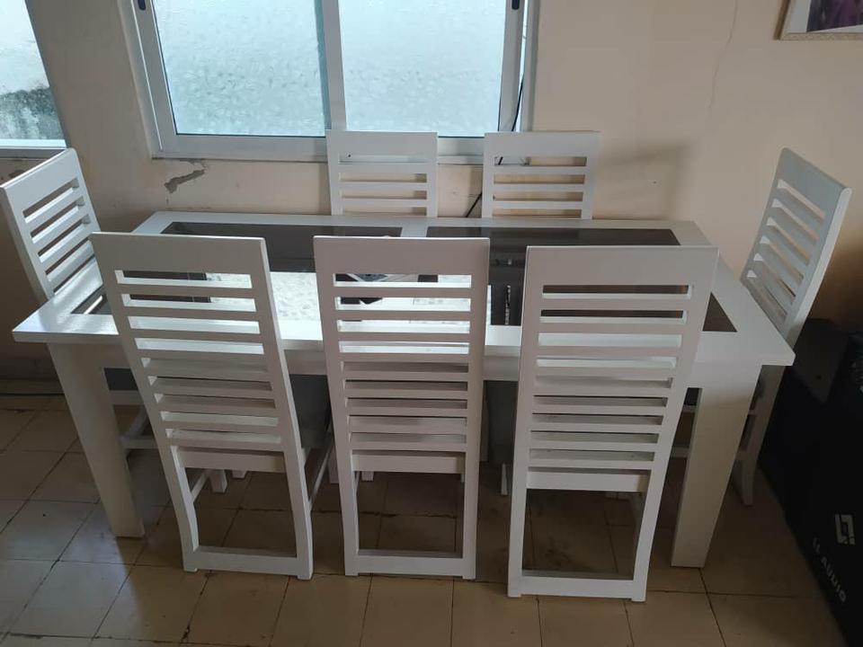 Juego de comedor de roble y cristal de 7 sillas - $1,100