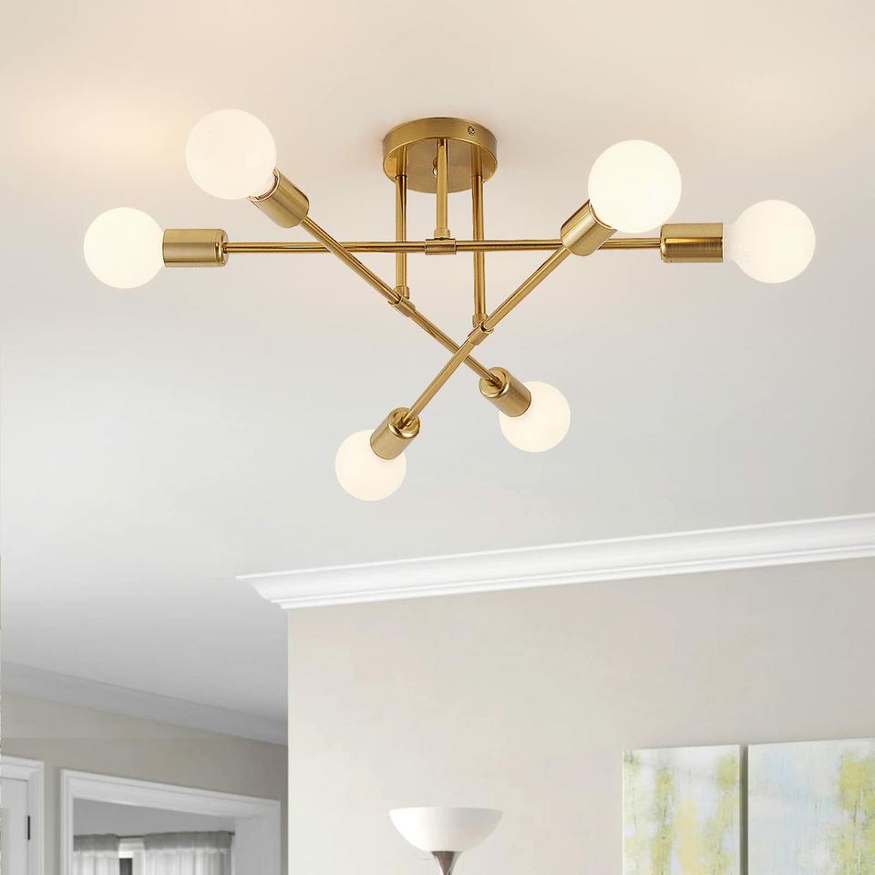 LÁMPARA DE TECHO SEMI-EMPOTRADA TIPO SPUTNIK DORADA 6 LUCES. - $40