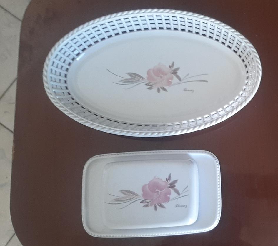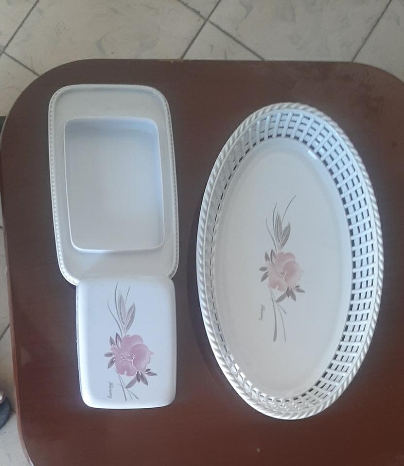 Bandeja (cesta) plástica para pan y mantequillera con dibujos de flores 1600 pesos