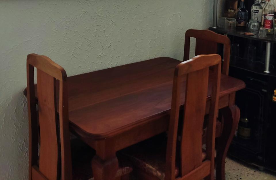JUEGO DE COMEDOR DE MADERA 4 SILLAS.70 USD