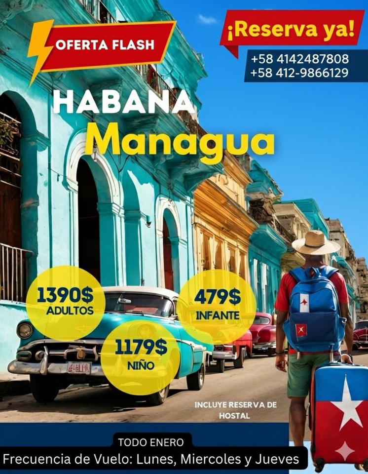 #ViajaConEstilo #HabanaGuyana #HabanaManagua #OfertaFlash #Turismo2026 #ViajeSeguro #AventuraEnFamilia #ReservasYa